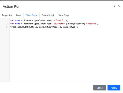 << Click to Display Table of Contents >> Navigation: Actions > Client script |