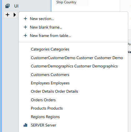 To add a new item press + button at bottom and select one of an existing frames or one of the New.. options.